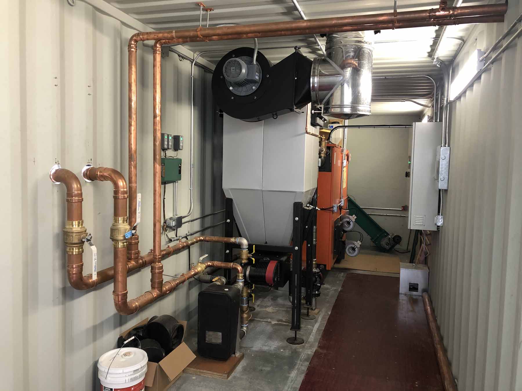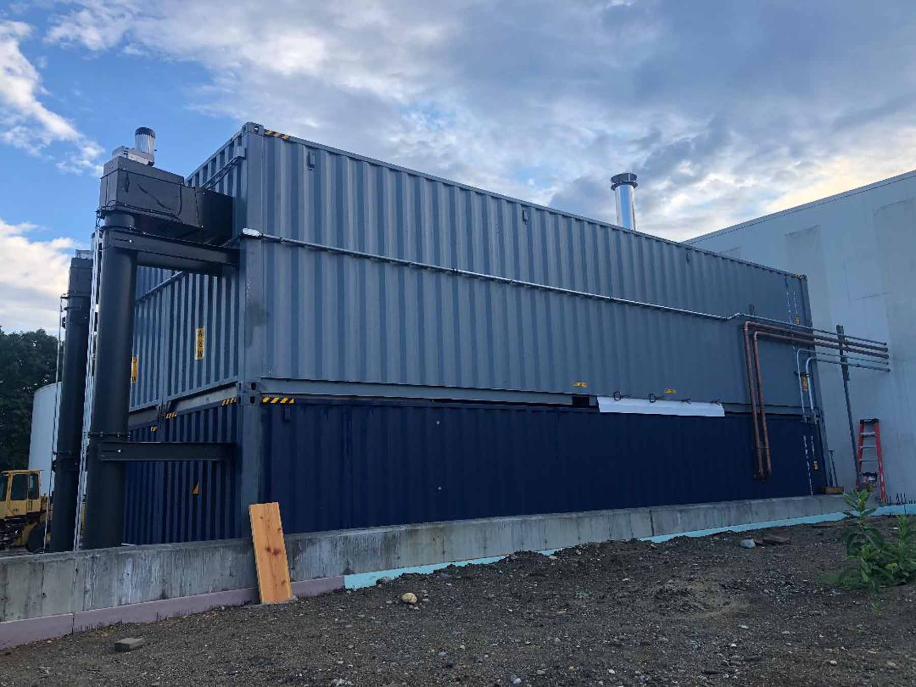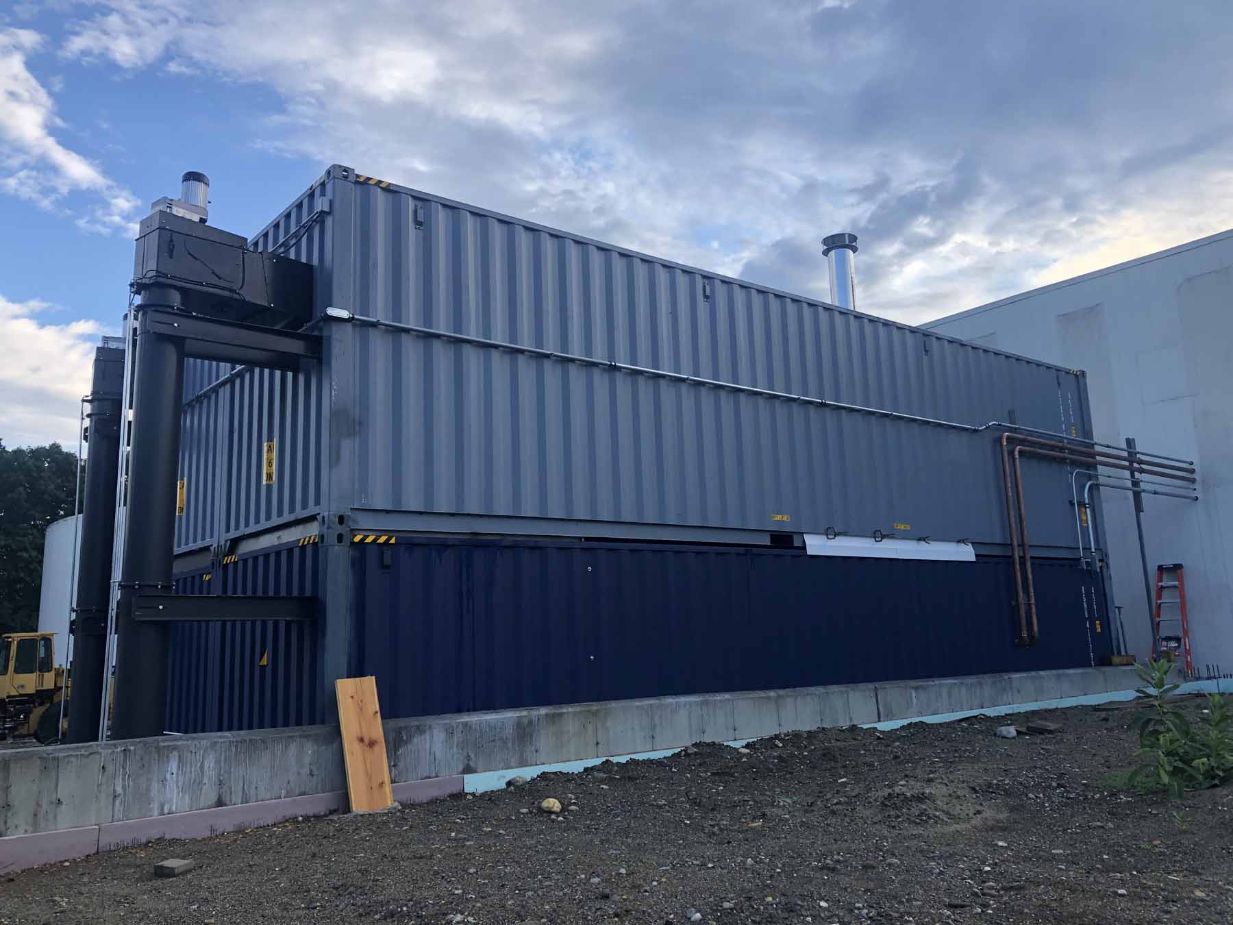 Double Stacked Container Rooms with integrated wood chip storage