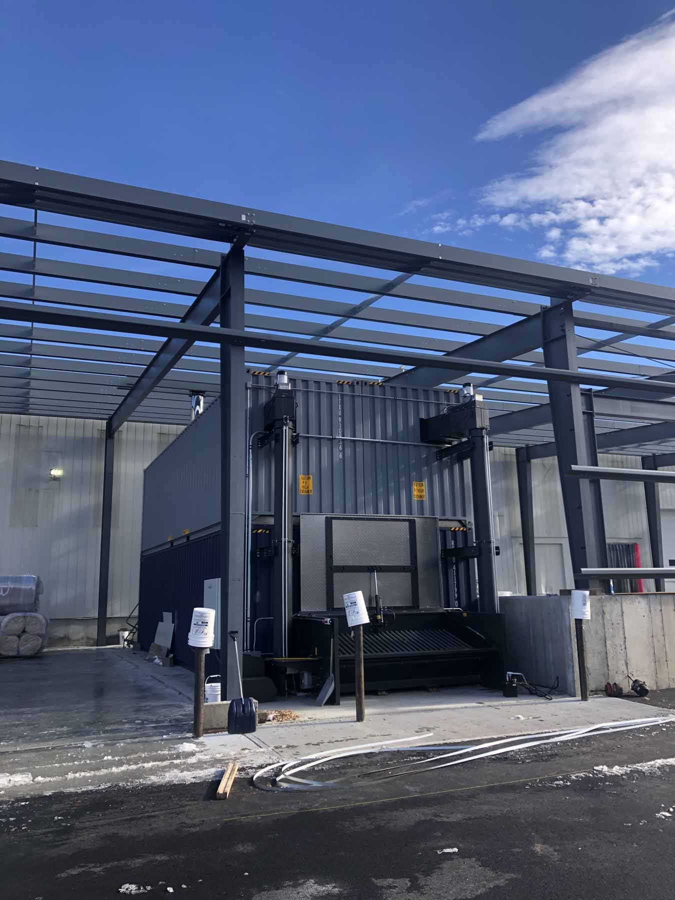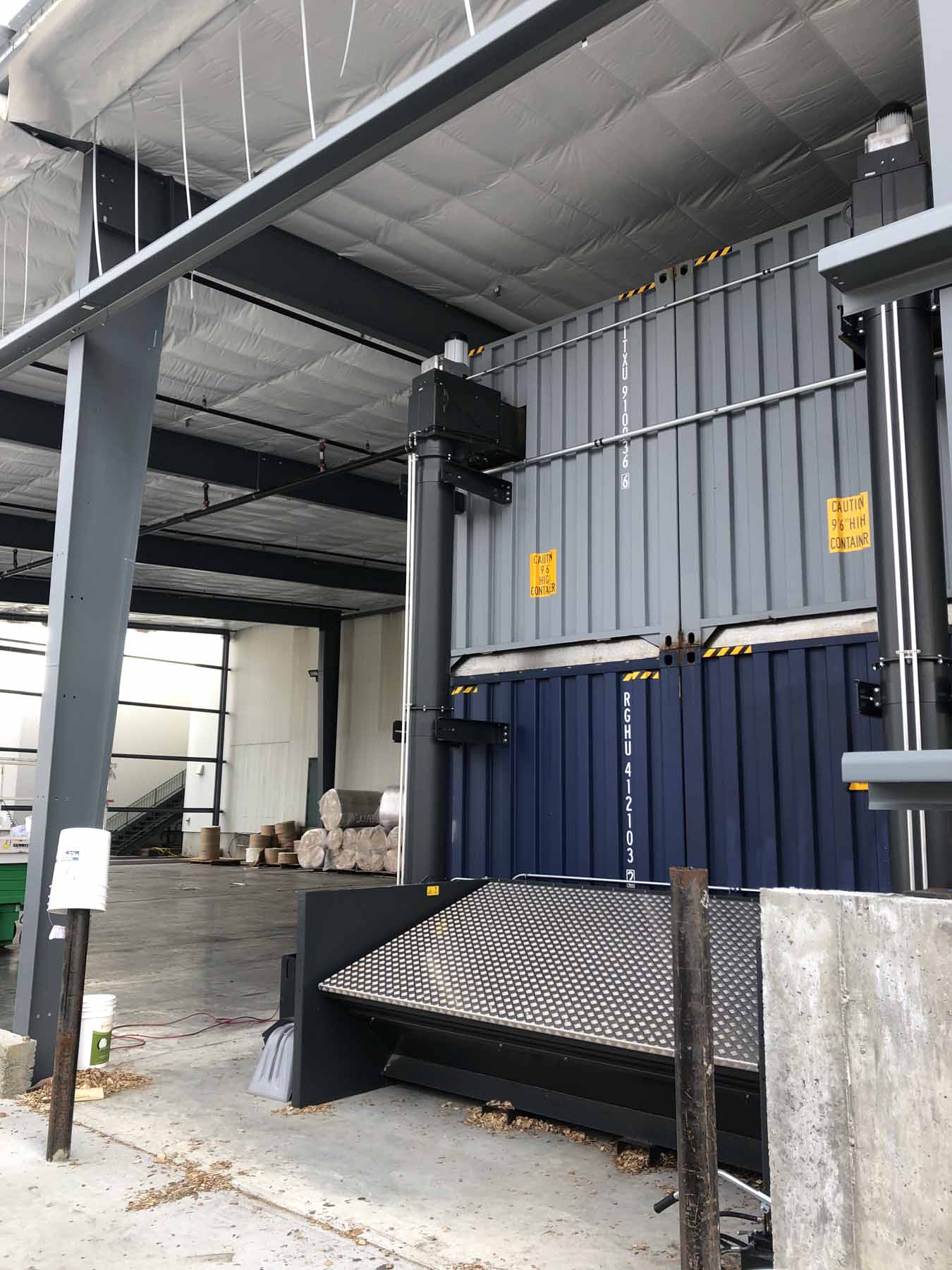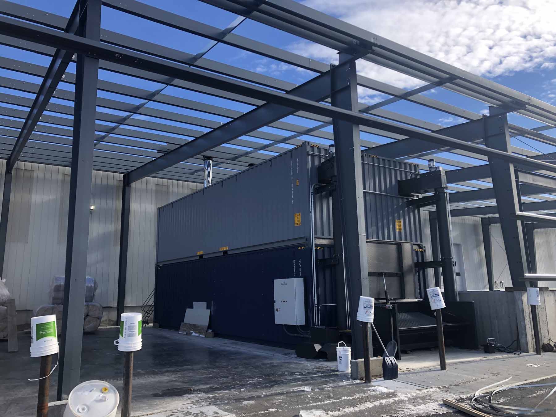 Double Stacked Container Rooms with integrated wood chip storage